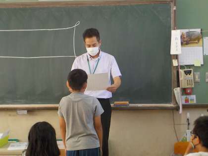 6年間,歯の健康に気をつけ,健康的な歯を維持してきた人に贈られる賞状を校長先生から受け取りました。