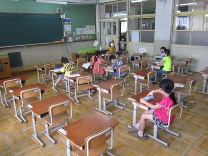 朝から,暑い中登校して頑張っている子どもたちです。