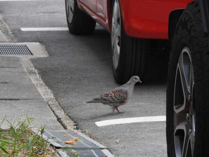 学校の花壇では,みんなが学校に来ないと,そーっとキジバトがやってきています。