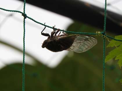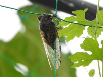 毎度のことですが,ツルレイシのところにクマゼミがやってきます。なぜか,決まってメスです。