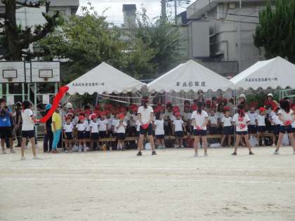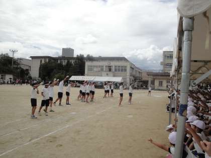 応援合戦です。赤・白とも,工夫された応援を披露していました。