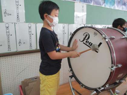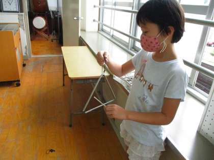 今日は理科を音楽室で行いました。