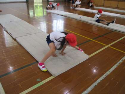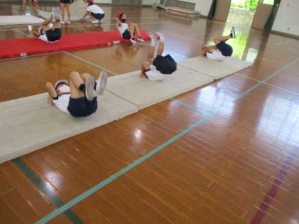 新しい技の開脚前転・開脚後転にも挑戦しました。
