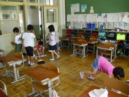 1ねんせい だけで おそうじを しています。