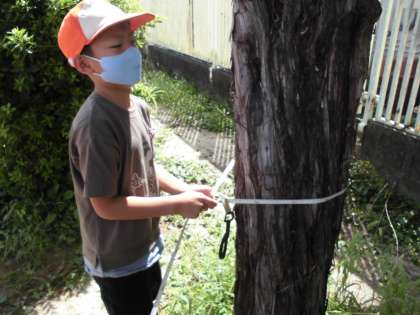 まきじゃくを使う時のポイントに気を付けながら長さを測ります。