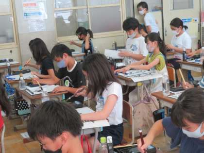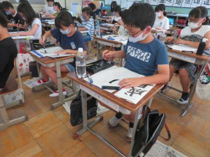 2学期初めての毛筆は,筆順に気を付けて字形を整えてかきました。