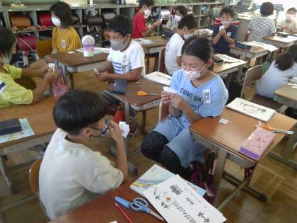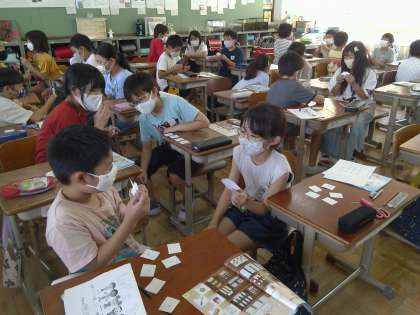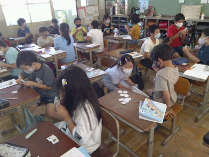 相手の手持ちのカードに対して問い,持っていたらカードがなくなります。なくなったほうが負けです。楽しみながら,文房具の言い方を慣れ親しみました。
