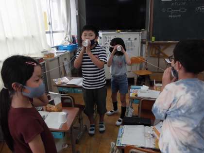 糸電話を使って,音が伝わる様子を観察しました。