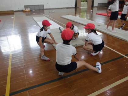 準備ができた後,グループごとに体操や体ほぐしをおこないました。