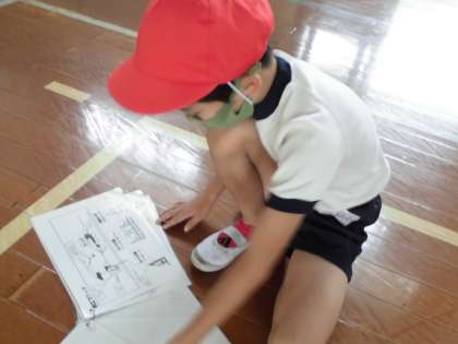 自分の練習している技の特徴を,学習カードで確かめたり,友達とアドバイスを出し合ったりしながら練習を続けます。