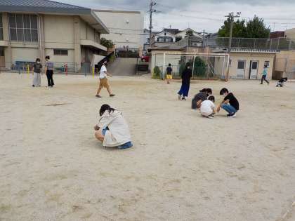 今日は,6年生みんなで運動場の石拾い・草抜きをしました。