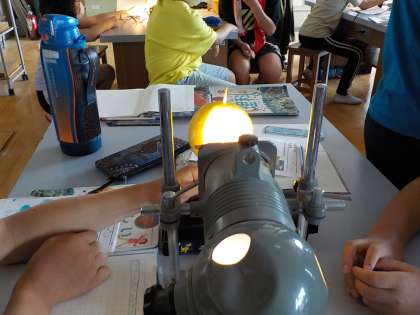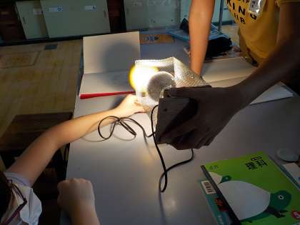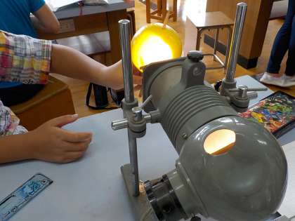 今日は,照明と手作り月を使って,月の形を再現しました。