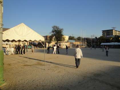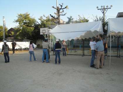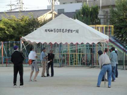 午後5時前。地域のみなさんが集合され,体育祭の準備が行われました。まずは,テントを組み立て,所定の位置に移動しました。