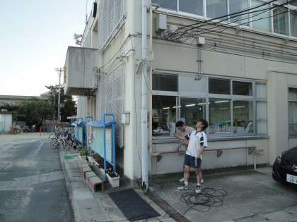 放送機械を設営していきました。教職員も協力して取り付けました。