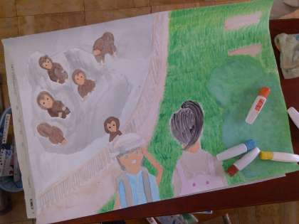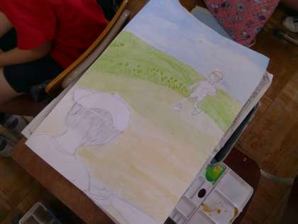 水彩絵の具のよさを生かして,ていねいにかいています。
