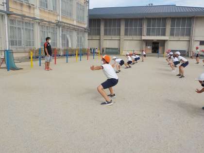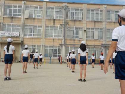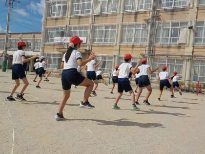 運動会に向けて学年全体で練習に励んでいる6年生たち。