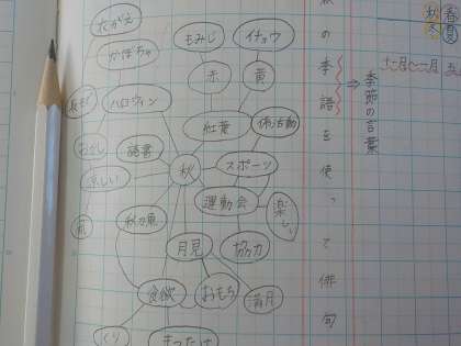 6年生は国語科で秋の季語を使った俳句を書きます。