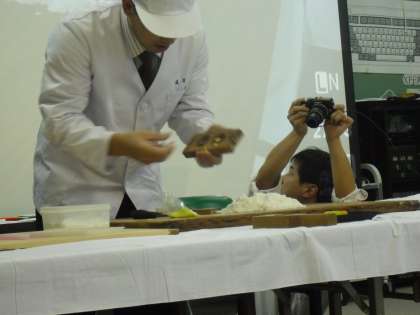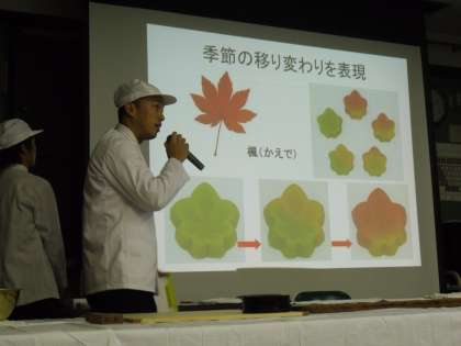 総合の学習で,京都の伝統的な和菓子を作っておられる会社『鼓月』さんからゲストティーチャーをお迎えしました。和菓子の歴史や作り方について学び,それぞれの仕事における工夫や仕事にかける思いなどを実演を交えながら教えていただきました。