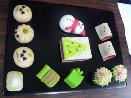 事前の授業で,あったらいいなと思う和菓子のイメージを絵に描いていました。その中の何点かを実際に作っていただいたのを見た時,大きな歓声があがりました。