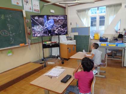 スズムシの音色を検索して,みんなで耳を傾けました。