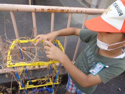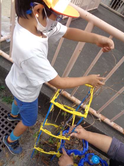 つるは,くるくると支柱に巻きついていてとるのが大変でしたが,