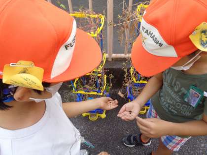 夏休み中にもアサガオの種をおうちで収穫してもらっていましたが,