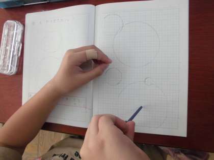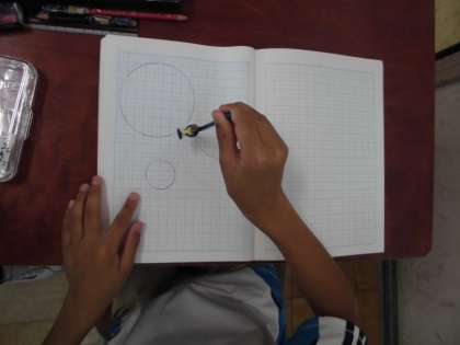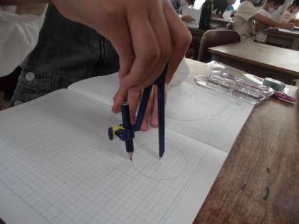 いろいろな大きさのまるい形をかくためには,「コンパス」を使うと便利だと知り,使い方を学びました。