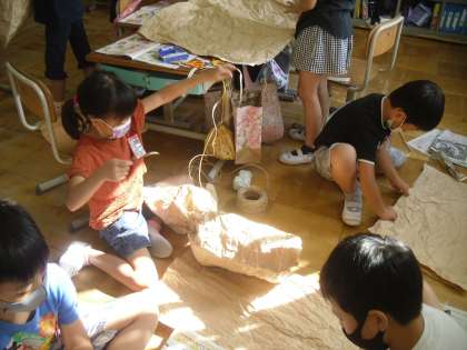 紙を くしゃくしゃ ぎゅっ とする感覚を楽しみました!