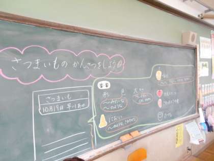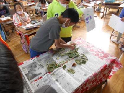 手にとったり,GIGA端末で写真を撮り色や形をじっくり見たりしていました。