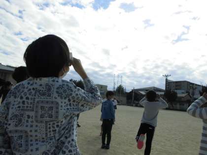 写真では,雲がたくさん見えますが…しっかり隙間から太陽の様子が見えています!!