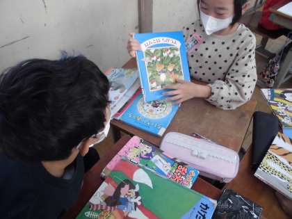国語科の「はんで話し合おう」の学習で,2年生に読聞かせをして本を好きになってもらおうという学習を進めています。