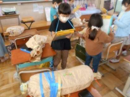 図工『くしゃくしゃぎゅっ』の鑑賞会です。