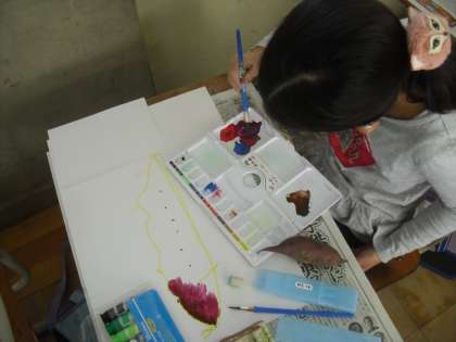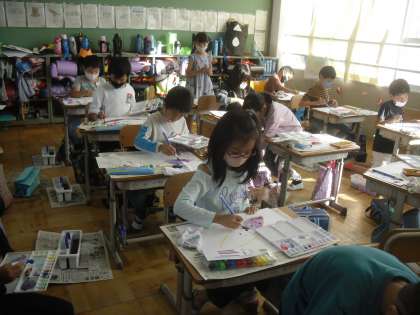 収穫したさつまいもの絵を描きました。さつまいもの色を素敵に絵具で色付けしました!