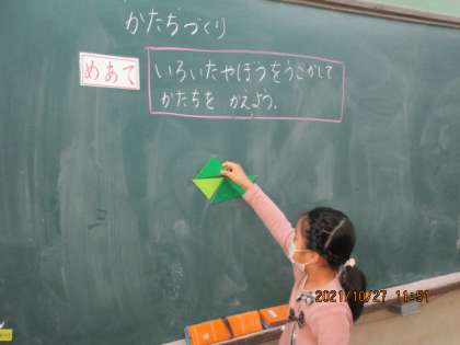 きょうは 一つ うごかして かたちをかえる 学しゅうをしました。