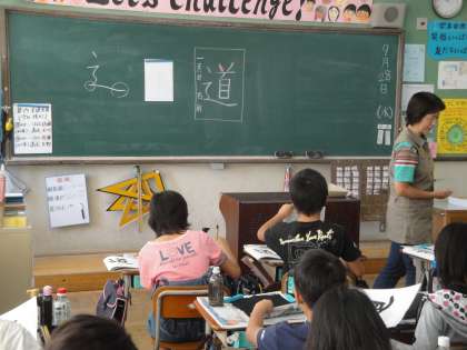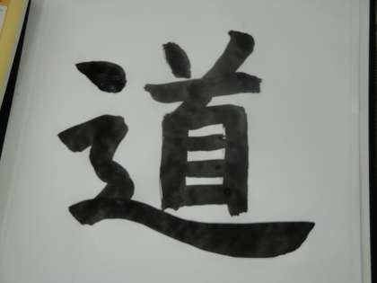 「しんにょう」の組み立て方に気を付けて『道』を書きました。一文字をバランスよく書くのは,意外に難しいようでした。