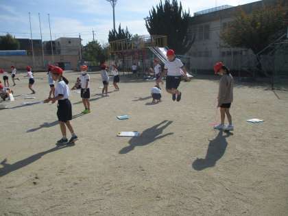 なわとびでは,自分でめあての回数を決めて取り組みます。