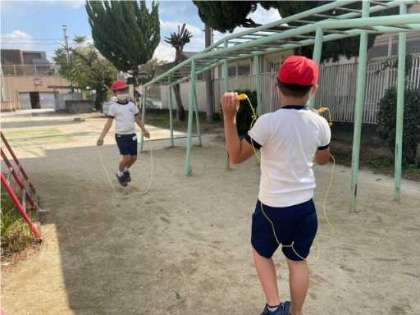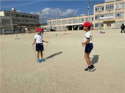 2年生までにできた技は何か思い出しながら,3年生ではどんな技に挑戦するか考えて縄跳びの学習に挑みました。