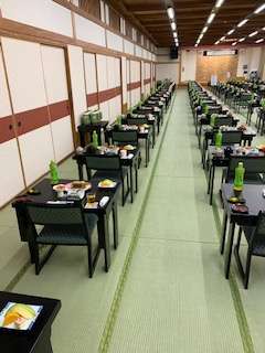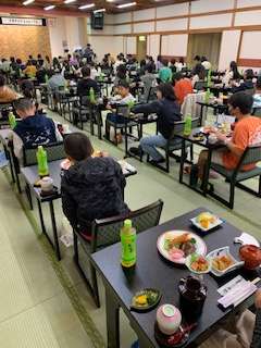 感染対策を講じた中での食事となりますが,みんな楽しく食事の時間を過ごしています。