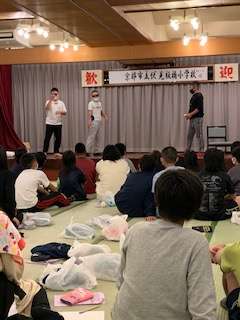 夕食と入浴を終え,レクリエーション係が考えた出し物で楽しませてくれています。