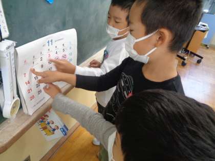 カレンダーで学習発表会や校外遠足などの予定を確認しました。