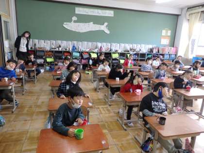 木曜日は各学年3組がフッ化物洗口を行いました。