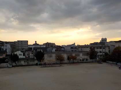 放課後,教室から空を見上げると,とってもきれいな夕焼けが広がっていました。