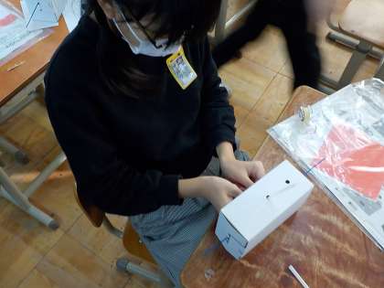 「どうやったら,この紙人形が回るんやろう?」「こっちから回るようにするのがいいか・・そっちから回るようにするのがいいのか・・。」などじっくり考えて,学習に取り組んでいます。