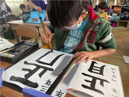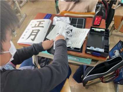 毛筆の書き方を思い出しながら書初めの作品に挑戦しました。