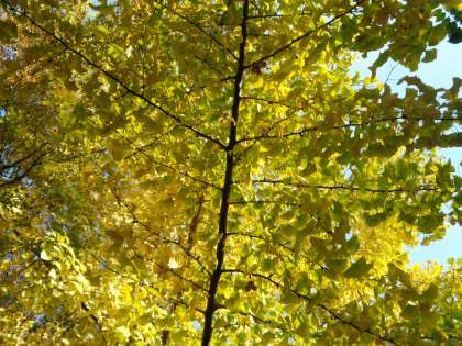 伏見港公園には大きなイチョウの木があり,秋晴れの青空のもと