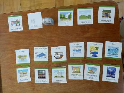 「もし,自分の理想の街があったら・・」というテーマでカードの中から必要な施設や場所を選び,my townをつくりました。