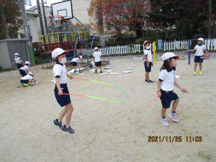 休みじかんになわとびに ちょうせんして たのしむようすが みられました。