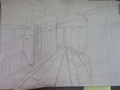 下絵がだんだんできてきました。奥行きを意識してかいています。