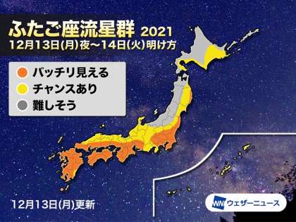 夜空を流れる流れ星。1年のうち,最も見られる流れ星(流星群)は3回あるのですが,そのうちの1回“ふたご座流星群”が先週末から流れ始め,今週半ばまで観測できます。