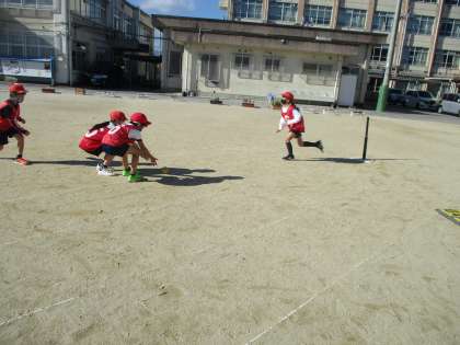 体育でハンドベースボールに取り組んでいます。